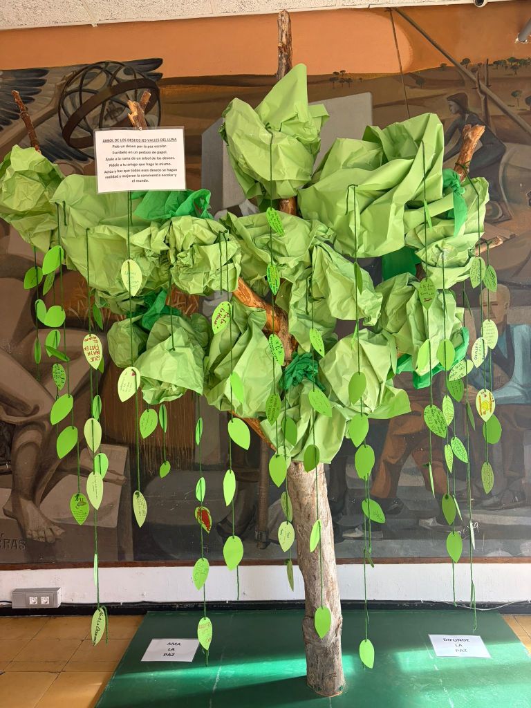 Hoy, 30 de enero, el IES Valles del Luna lanza un mensaje a favor de la convivencia, la tolerancia y la Paz. Para ello, en la entrada del instituto hemos plantado un árbol en el que el alumnado ha ido colgando sus deseos de un mundo mejor, en los que el respeto y el entendimiento son los protagonistas. Además, nuestras alumnas mediadoras, la responsable de Convivencia y la responsable de Coeducación han leído un manifiesto en el recreo.