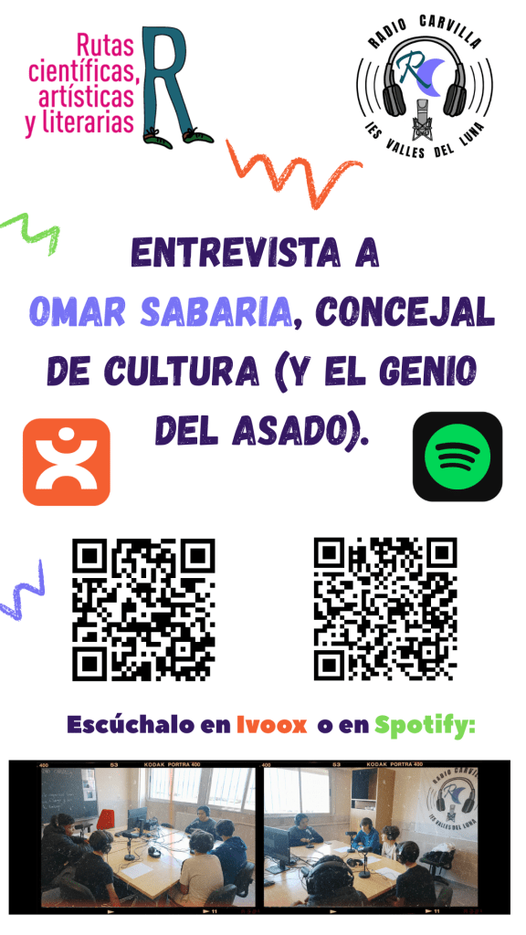 Nuestros alumnos de 2º de ESO Darío, Damián, Diego y Unai han entrevistado al concejal de cultura Omar Sabaria. Se trata de una actividad enmarcada en el proyecto de «Participación y Democracia» de las Rutas Literarias del Ministerio de Educación. La entrevista consta de dos partes: primero Omar nos habla de su vida personal, su vida en Argentina y su migración a España, y en la segunda parte nos cuenta detalles de su labor como concejal.